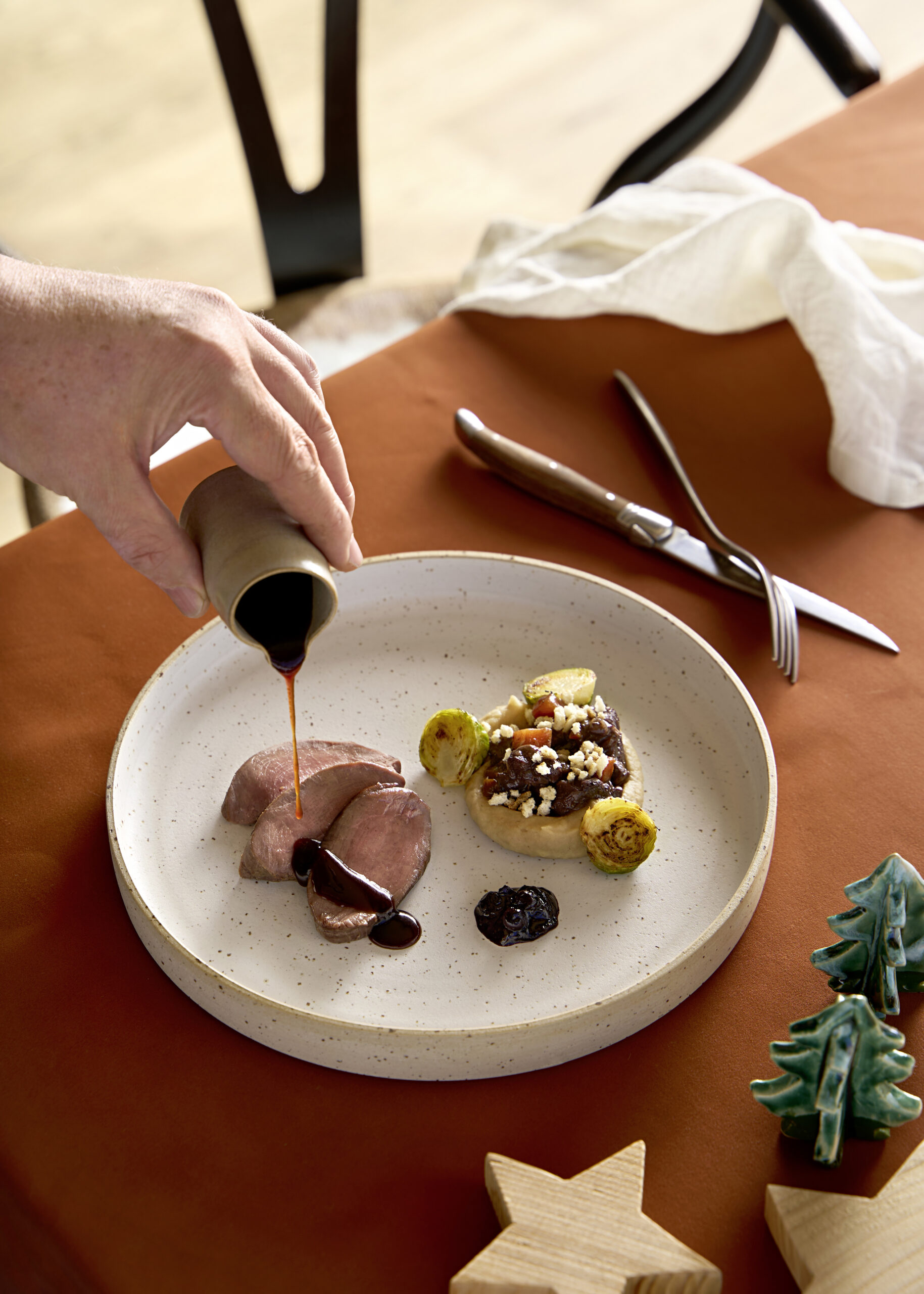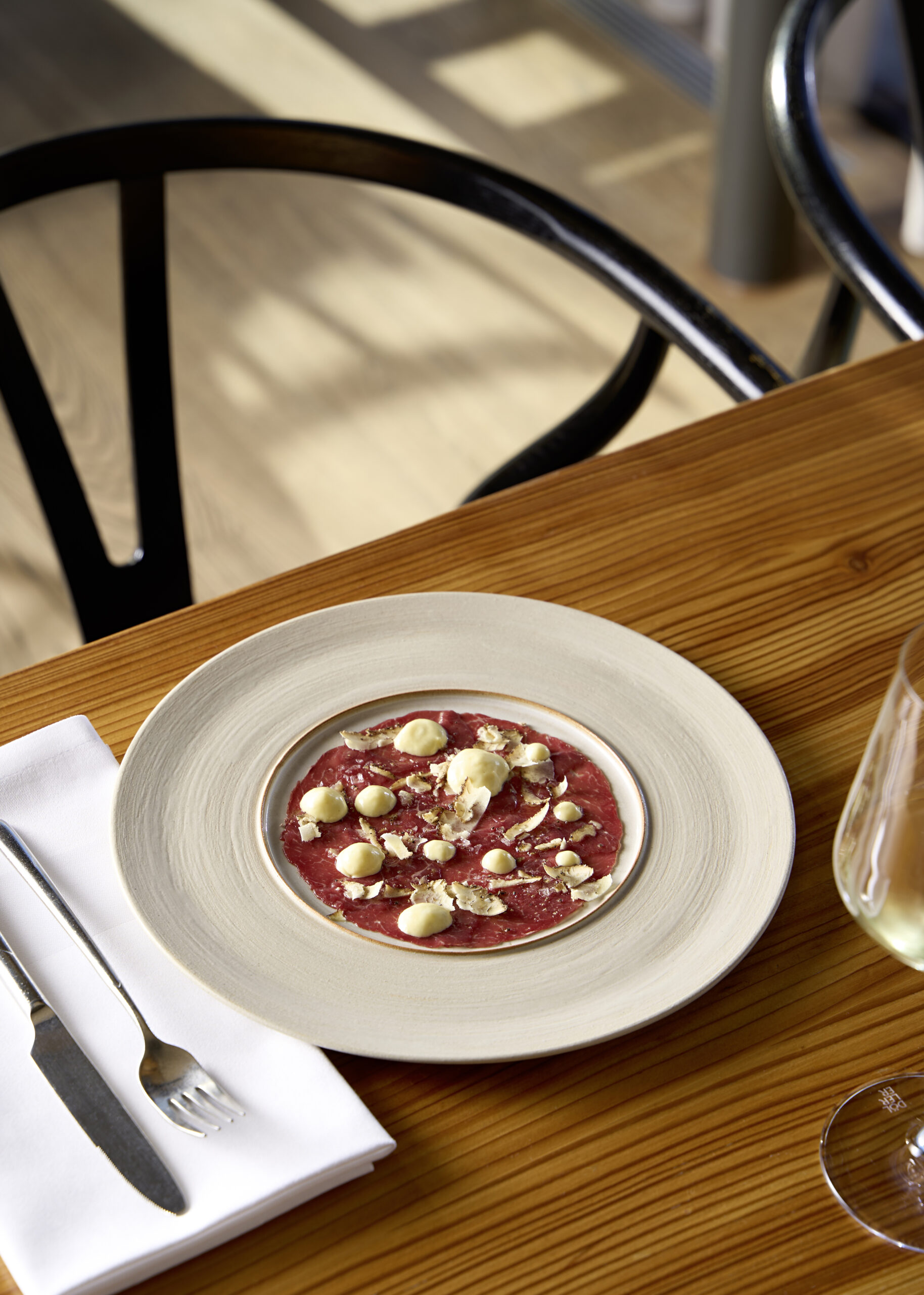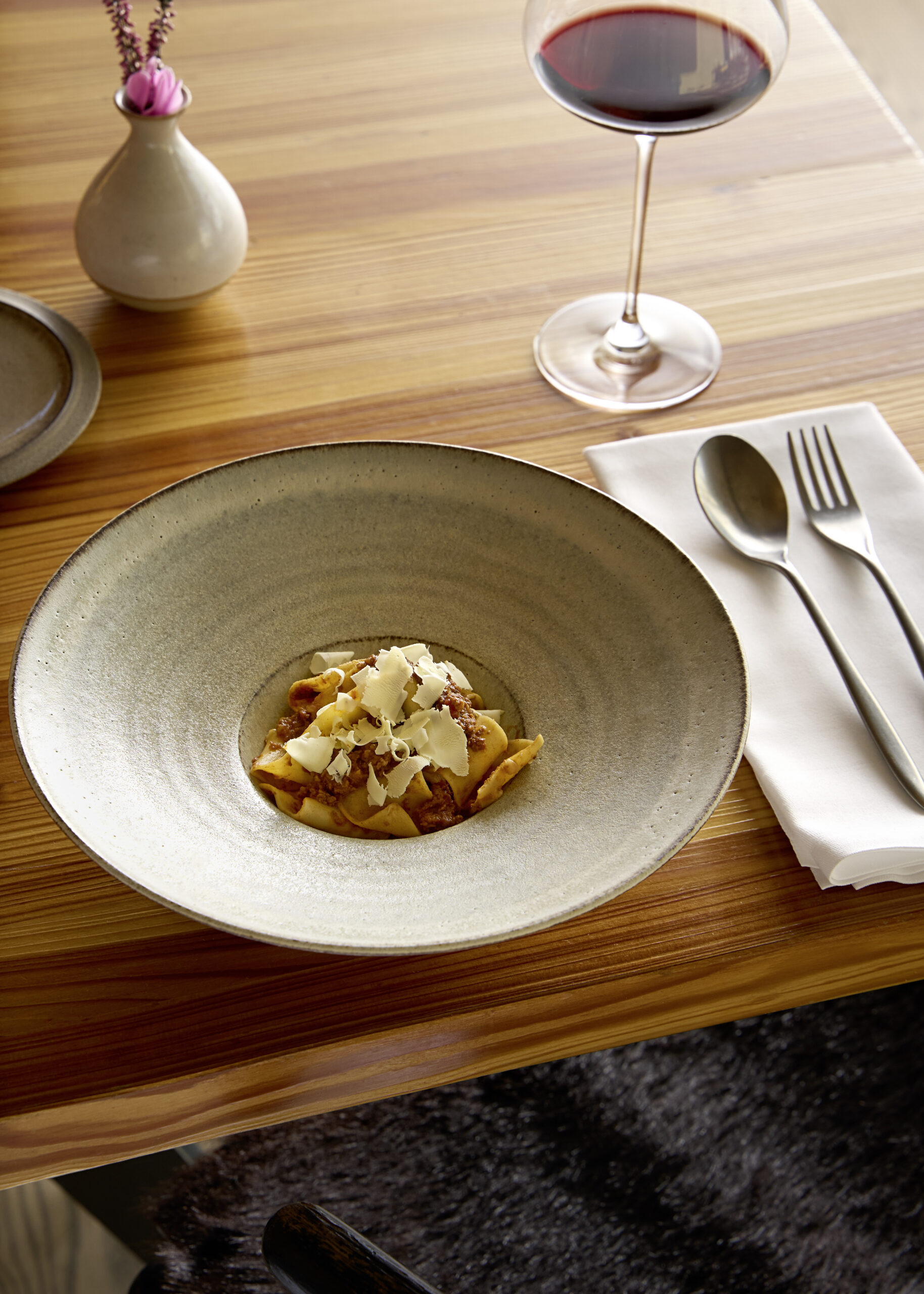 Auf dem Hof lebt eine eigene Aberdeen-Angus-Herde, deren Fleisch die Grundlage für die kreativen und zugleich bodenständigen Gerichte von Küchenchef Max Leodolter bildet. Seine Küche ist ehrlich und bringt den besonderen Charakter der Region auf den Teller.
